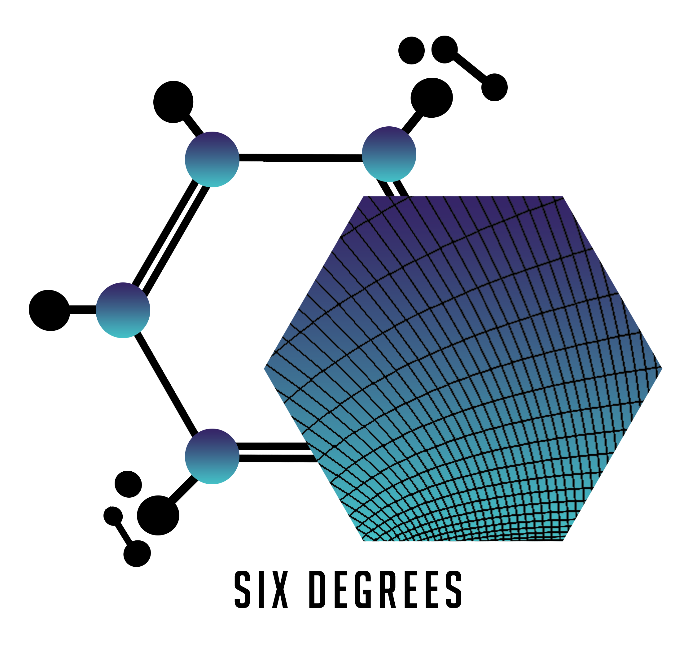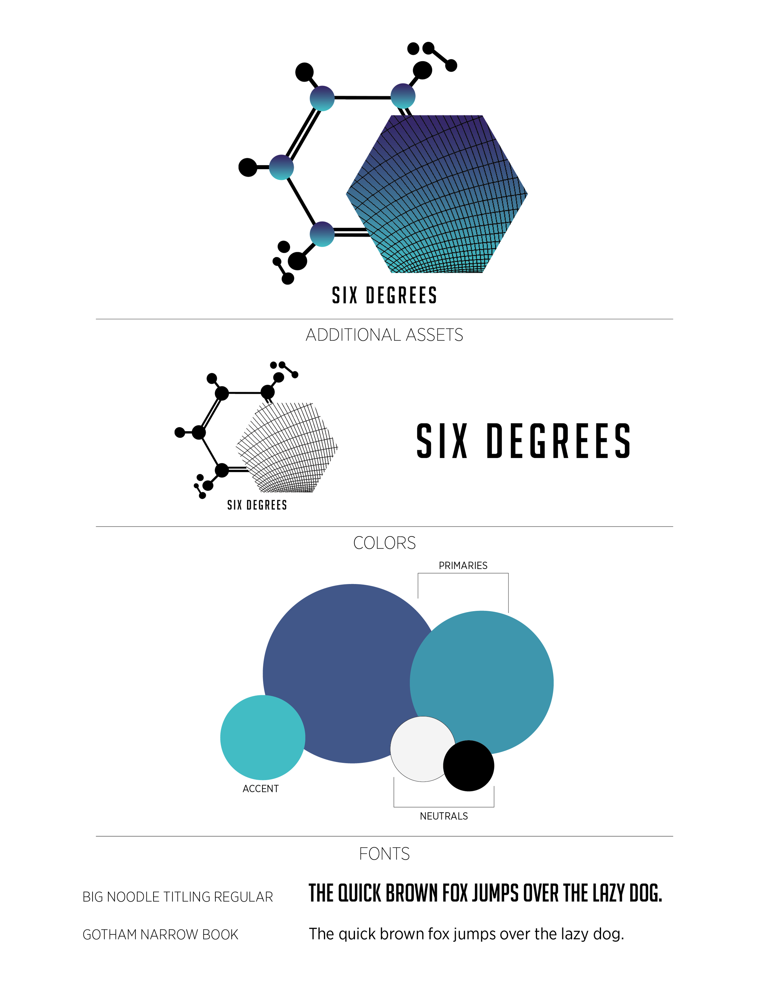 Brand design for an engineering contracting company. One partner in the company works in chemical engineering and the other works in mechanical engineering, and the name Six Degrees echoes the connections between those disciplines. The goal was to synthesize the two disciplines while still allowing each to stand out.